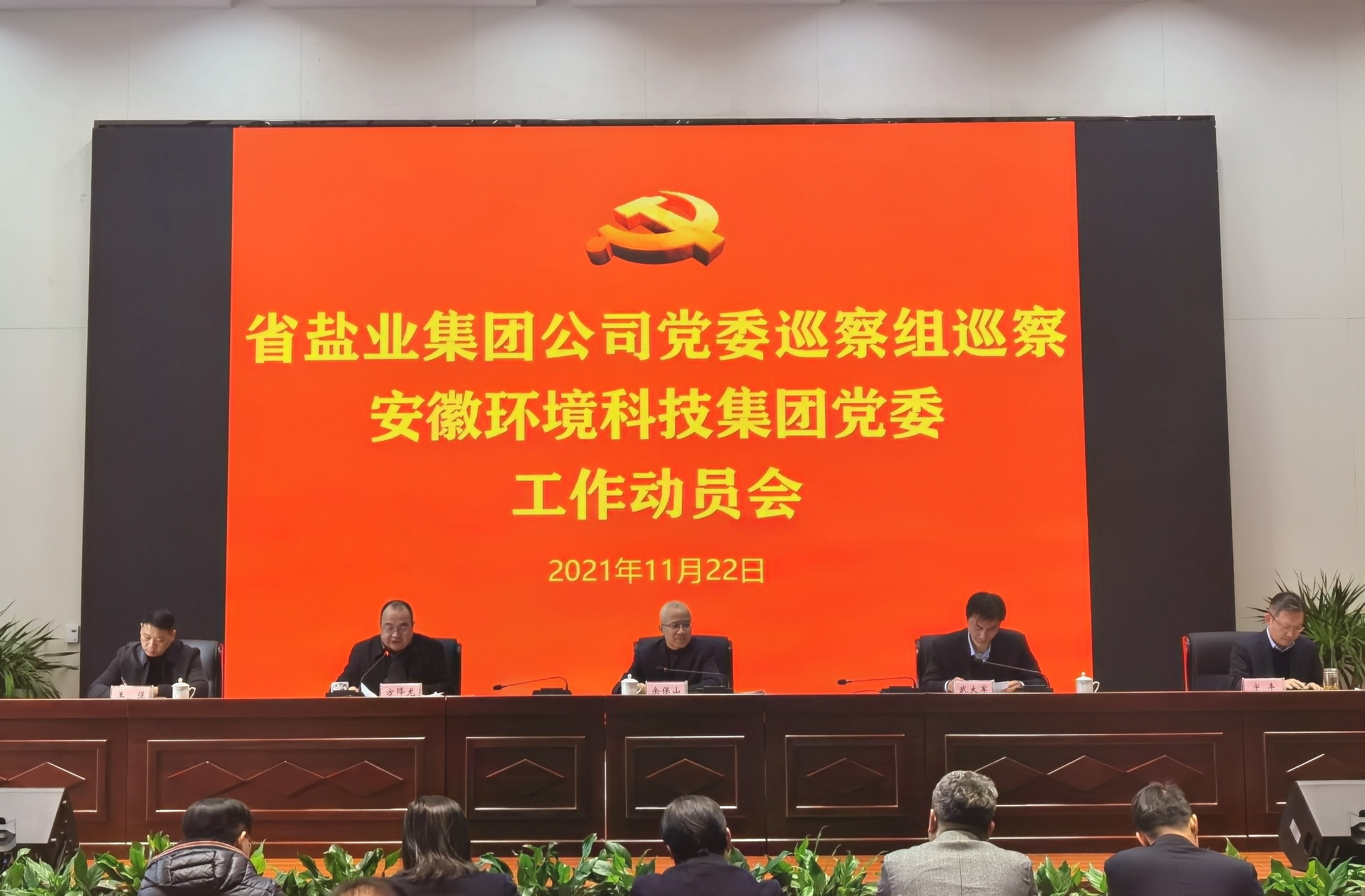 根據(jù)省鹽業(yè)集團(tuán)公司黨委關(guān)于巡察工作的部署安排,11月22日,省鹽業(yè)集團(tuán)公司黨委巡察組巡察安徽環(huán)境科技集團(tuán)黨委工作動(dòng)員會(huì)召開。集團(tuán)公司黨委委員、副總經(jīng)理,巡察工作領(lǐng)導(dǎo)小組成員余保山出席會(huì)議,就做好本次巡察工作提出具體要求。會(huì)前,巡察組組長主持召開與環(huán)境科技集團(tuán)黨政主要負(fù)責(zé)人見面會(huì),傳達(dá)了省委及集團(tuán)公司黨委關(guān)于巡察工作相關(guān)要求,通報(bào)了本次巡察的任務(wù)和工作安排。會(huì)上,巡察組組長作動(dòng)員講話,環(huán)境科技集團(tuán)黨委主要負(fù)責(zé)同志主持會(huì)議并作表態(tài)發(fā)言。