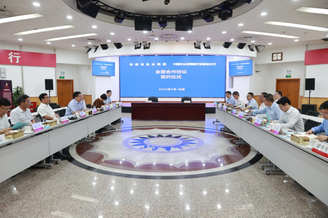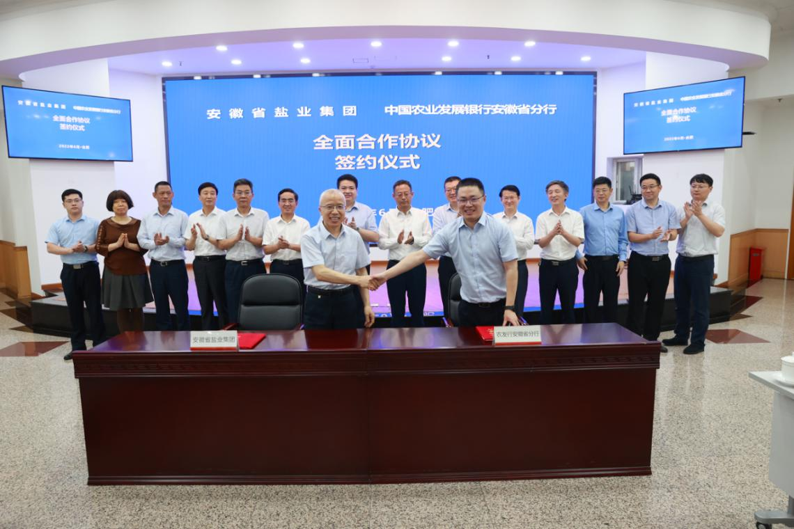 省鹽業集團公司總會計師李明,農發行安徽省分行黨委委員、副行長侯崢,以及雙方有關部門負責同志參加簽約儀式。