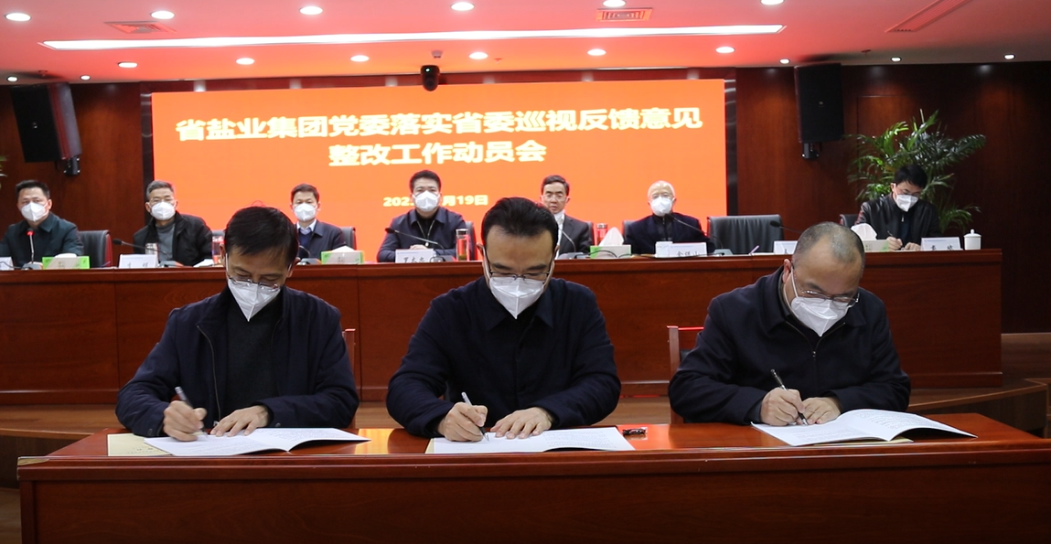 會議集中學(xué)習(xí)了習(xí)近平總書記關(guān)于巡視工作的重要論述,傳達(dá)了鄭柵潔書記在省委書記專題會上關(guān)于巡視整改工作的部署要求,學(xué)習(xí)了省委辦公廳《關(guān)于進(jìn)一步加強(qiáng)和改進(jìn)巡視整改工作意見的通知》和《關(guān)于加強(qiáng)省委巡視整改和成果運(yùn)用的若干措施》,解讀了《省鹽業(yè)集團(tuán)黨委關(guān)于健全工作機(jī)制推進(jìn)省委巡視整改落實(shí)的通知》和省鹽業(yè)集團(tuán)黨委落實(shí)巡視反饋意見整改、紀(jì)委落實(shí)巡視反饋意見整改、干部選拔任用專項(xiàng)檢查意見整改、意識形態(tài)工作專項(xiàng)檢查意見整改、巡察工作專項(xiàng)檢查意見整改的實(shí)施方案,各二級單位、本部各部門簽訂了“一對一”《整改任務(wù)書》,順朝公司、集團(tuán)公司運(yùn)營管理部作了巡視整改表態(tài)發(fā)言。