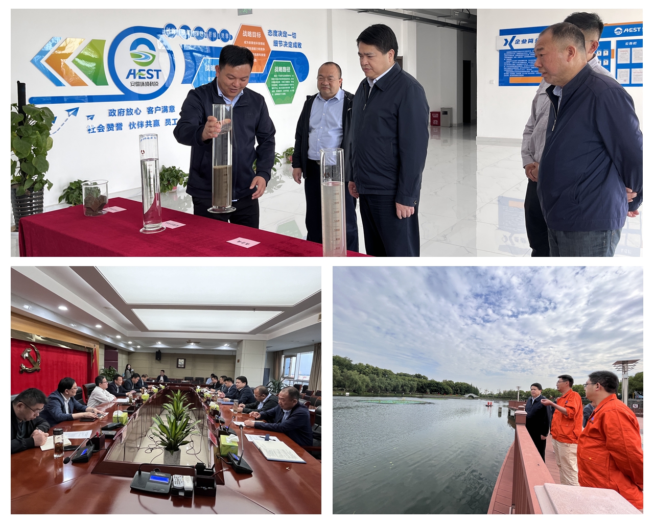 羅太忠指出,滁譙新區污水處理廠、和縣環城河水系綜合整治項目是環境科技集團代表作,經濟社會效益明顯,得到屬地政府和社會各界廣泛好評,成績來之不易,值得充分肯定。他強調,促進國有企業高質量發展,做強做優做大國有企業,必須堅持黨的領導,加強黨的建設。要提高政治站位,深入學習習近平新時代中國特色社會主義思想、貫徹習近平生態文明思想,特別是要運用好蘊含其中的世界觀和方法論,指導企業發展;要堅持讀原著、學原文、悟原理,做到學思用貫通,知信行統一;要加強企業內控管理體系建設,提升企業治理效能;要加大科研投入,努力培育企業的核心競爭力,不斷完善與政府的合作模式,形成可復制可推廣的項目開發模式、盈利模式和運營模式;要加強人才選育用留,為人才提供更多發展空間,努力提高員工的收入待遇,增加他們的幸福感、獲得感,激發他們對企業的認同感、歸屬感;要夯實黨建工作基礎,建強黨員隊伍,有效地推進黨建與生產經營相融合,充分發揮基層黨組織戰斗堡壘作用和黨員先鋒模范作用。