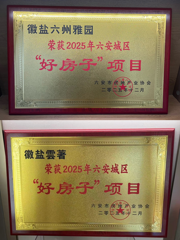 近日,徽鹽·六州雅園與徽鹽·雲(yún)著憑借在安全品質(zhì)、舒適宜居、綠色生態(tài)、智慧服務(wù)等方面的突出實(shí)績(jī),榮獲六安“好房子”項(xiàng)目稱號(hào)。